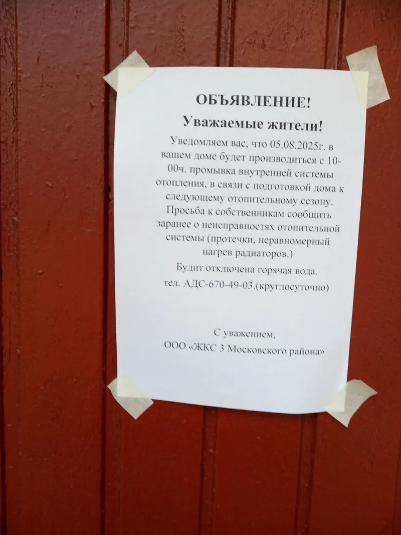 Информирование собственников о промывке системы центрального отопления с 10:00 05.08.2025 г. по адресам: