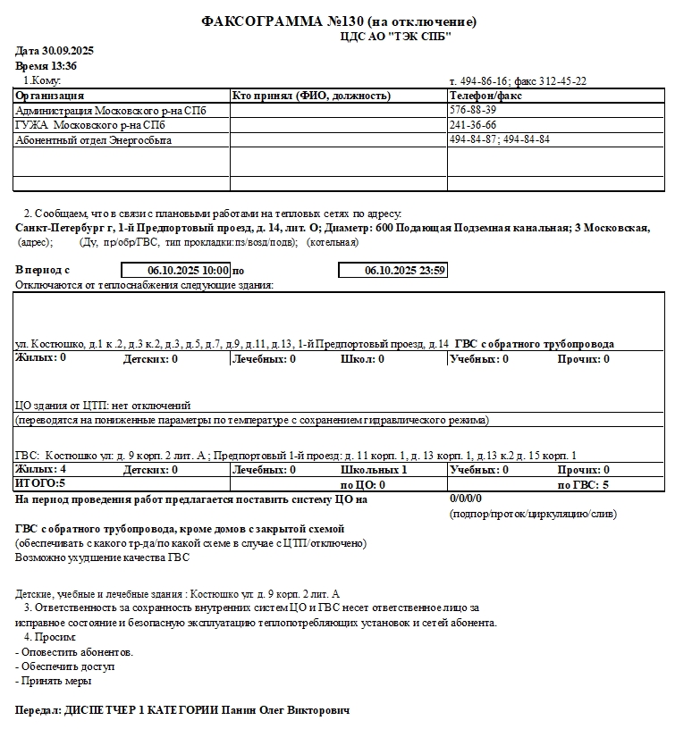 В период с 06.10.2025 10:00 по 06.10.2025 23:59 отключаются от теплоснабжения следующие здания: